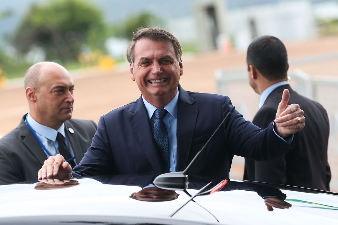 Presidente Jair Bolsonaro cumprimenta turistas no Palácio da Alvorada