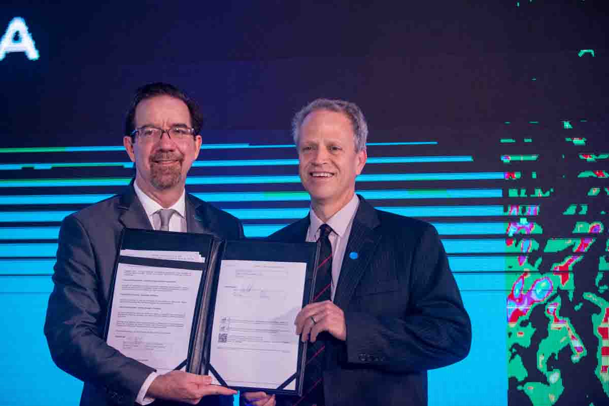 O termo foi assinado pelo reitor interino da NCSU, John Dole, e pelo presidente da Embrapa, Celso Moretti. foto: Saulo Coelho / divulgação